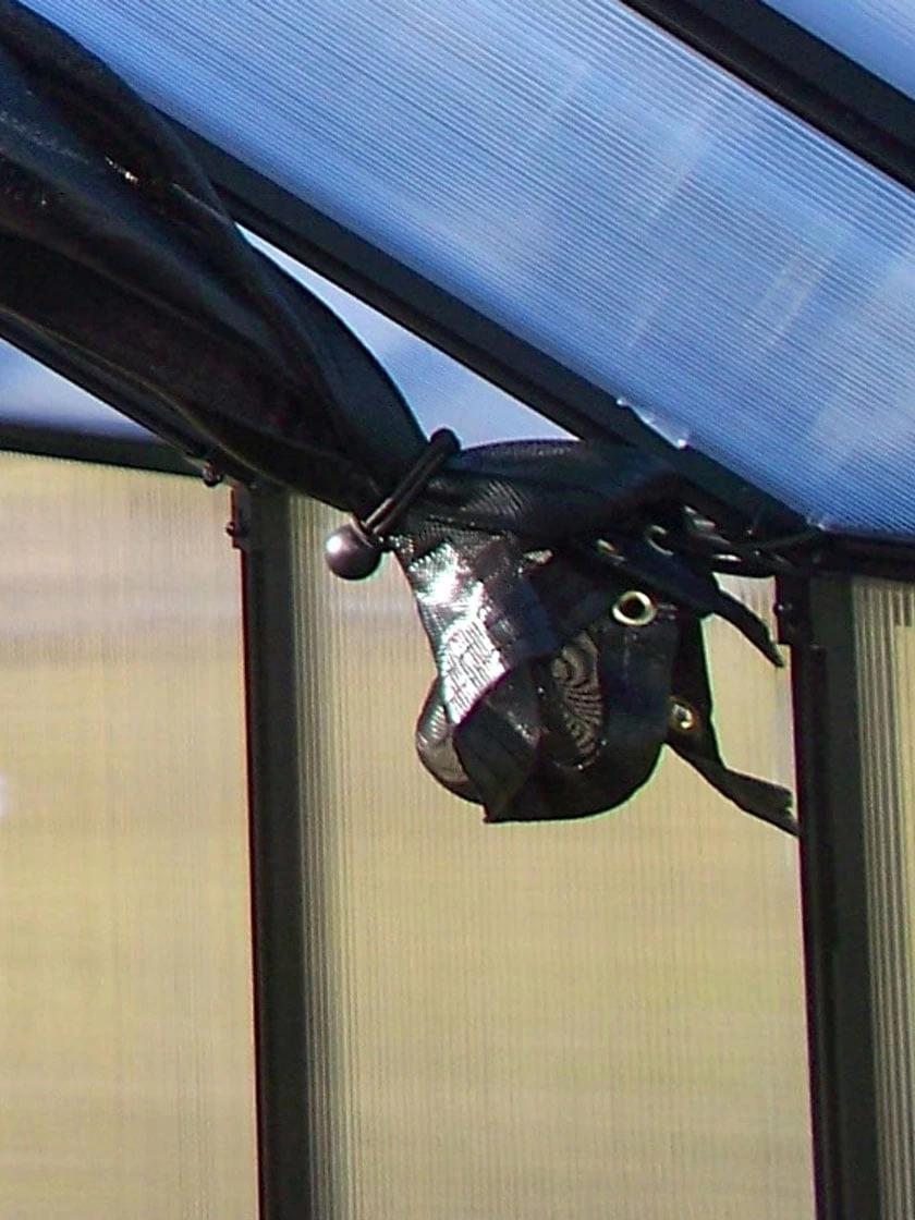 The Monticello 24 foot Shade Cloth Kit is specifically designed for the Monticello line of 24FT greenhouses. The design is simple, unique and thoughtful. Most shade cloths go on the outside of the greenhouse, interfering with roof vent and side window functioning. They are bulky and not easy to set up or take down. The Monticello Shade Cloth kit comes ready to use, no grommet installation needed. The commercial grade shade cloth (rated at 63%) works off a specially designed commercial grade wire system guaranteed to last for 7 years. The shade cloth comes in 4 foot sections so it will work with our Automatic Watering system and since the shade cloth is on the inside, it will not interfere with the Monticello Automatic Vent openers allowing fresh air to flow in and out un impeded. To operate the Shade Cloth System is as easy as pulling the cloth back to open or pulling tight to the other side to close. Just like our greenhouses, the Monticello Shade Cloth is proudly made in the USA from start to finish.